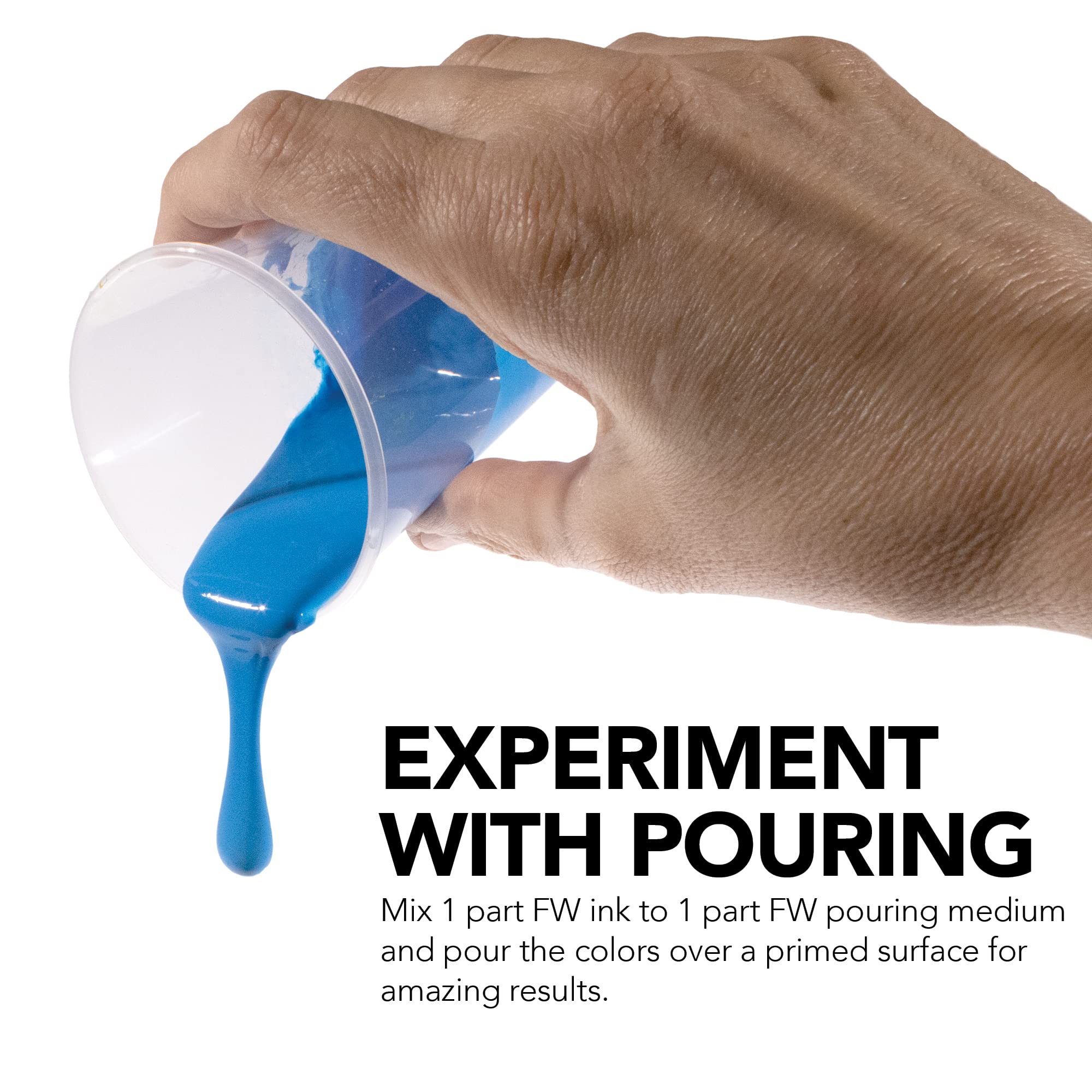 - Experiment with Pouring - Experience the magic of this acrylic pouring medium by mixing 1 part Aquafine, System3 or FW ink to 1 part pouring medium and pour the colors over a primed surface using the technique of your choice